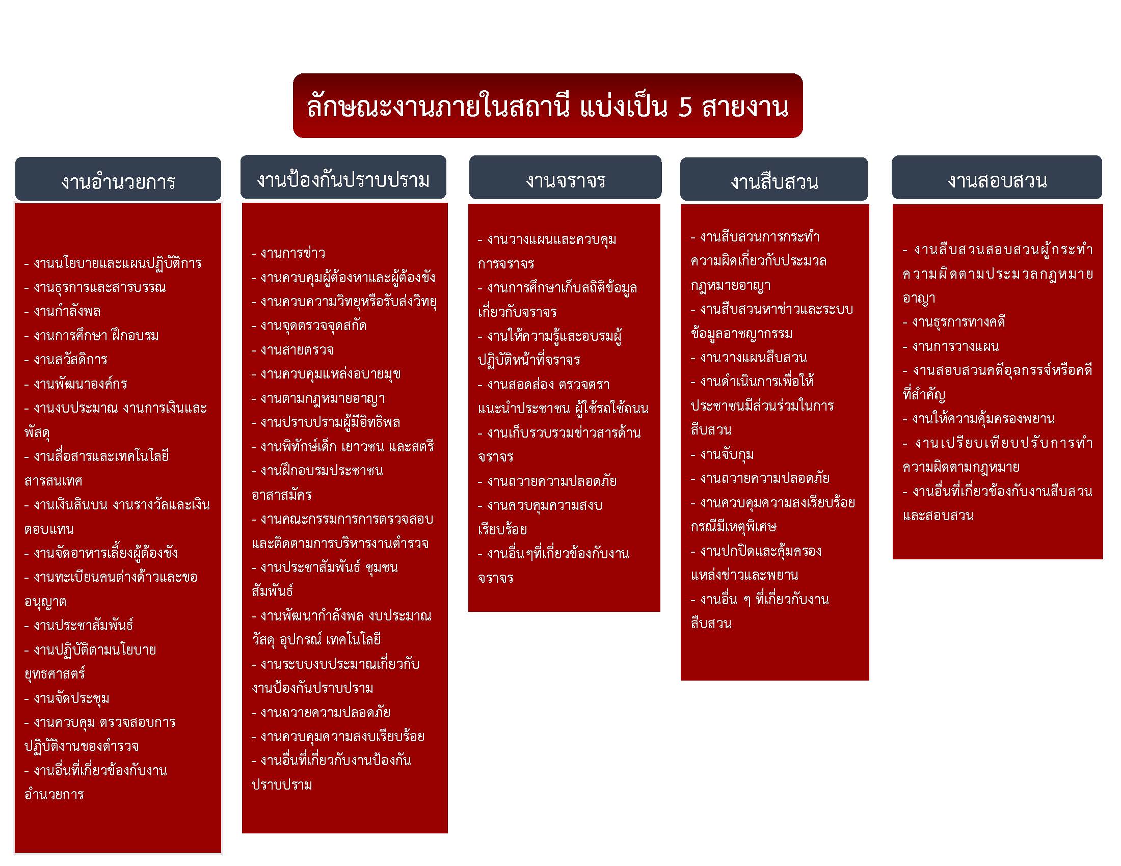 ๕. ปฏิบัติการอื่นใดตามที่กฎหมายกำหนดให้เป็นหน้าที่ของตำรวจหรือสำนักงานตำรวจแห่งชาติ